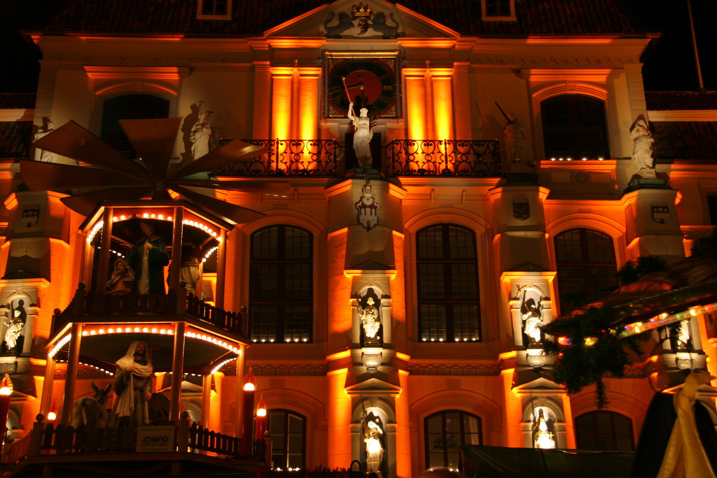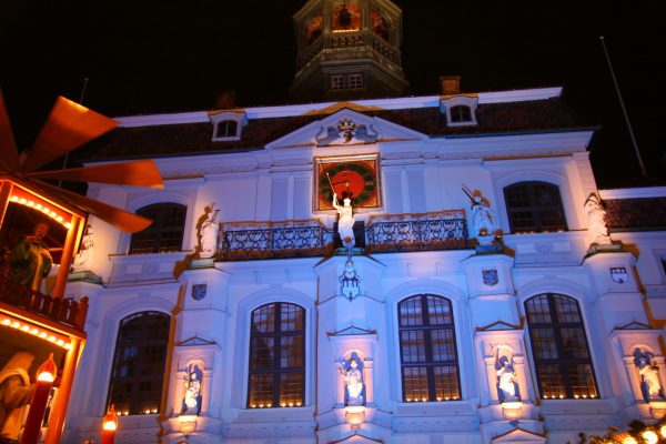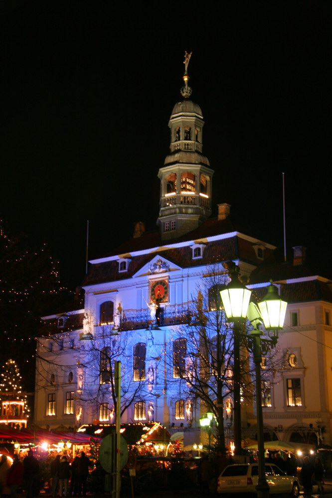 Besonders schön ist die Illumination der Rathausfassade während der Weihnachtszeit. Die Aktion „Lüneburg leuchtet“ hüllt dabei Jahr für Jahr das Rathaus (sowie die Brausebrücke und die drei Innenstadtkirchen) in weihnachtliches Licht.