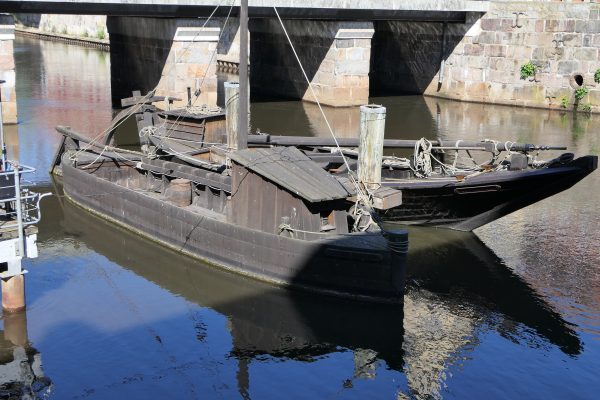 Im Wasser vor dem Alten Kran liegen zwei historische Schiffstypen als Nachbauten: ein Salz-Ewer und ein Salz-Prahm. Diese Schiffe stehen symbolisch für den früheren Transportweg des Lüneburger Salzes. Die Lüneburger Flotte soll in ihrer Blütezeit rund 100 Schiffe gehabt haben. Über Flüsse und Kanäle wurde das Salz bis nach Lübeck und weiter in den Ostseeraum verschifft. Anfangs zogen kräftige Männer vom Ufer aus an langen Seilen die Boote durch die Ilmenau. Gegenüber vom Kran, wo heute das Hotel Altes Kaufhaus steht, stand das „Häringshaus“ (erstmals 1302 erwähnt). Bis in die 1960er-Jahre konnten die Lüneburger am Stintmarkt noch frische kaufen. Übrigens vom Stint genannten Fisch (ein bis zu 30 Zentimeter langer Meeresfisch in den Küstengewässern Europas von der Ostsee bis zur Biskaya) leitet sich der Name Stintmarkt ab.