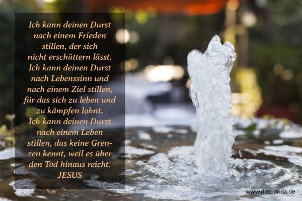 I can quench your thirst for a peace that cannot be shaken. I can quench your thirst for the meaning of life and for a goal that is worth living and fighting for. I can quench your thirst for a life that knows no boundaries because it reaches beyond death. JESUS