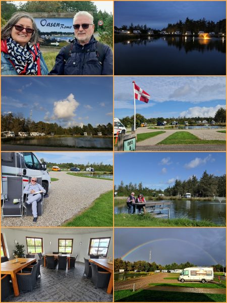 Den Namen trägt dieser Stellplatz im Süden der Insel Rømø zurecht: OASE. Eigentlich sind es mehrere „Oasen“: Kreise um künstlich angelegte Seen, um die sich die Camper stellen. Breit und lang genug. Mit großzügigen Rasenstreifen abgetrennt. 218 Stellplätze weitläufig verteilt, https://www.oasen-roemoe.dk/de