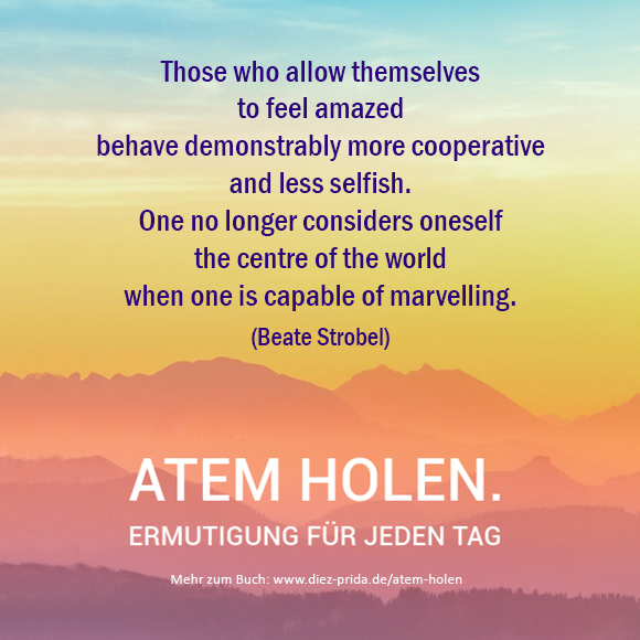 Those who allow themselves to feel amazed behave demonstrably more cooperative and less selfish. One no longer considers oneself the centre of the world when one is capable of marvelling. (Beate Strobel) Picture