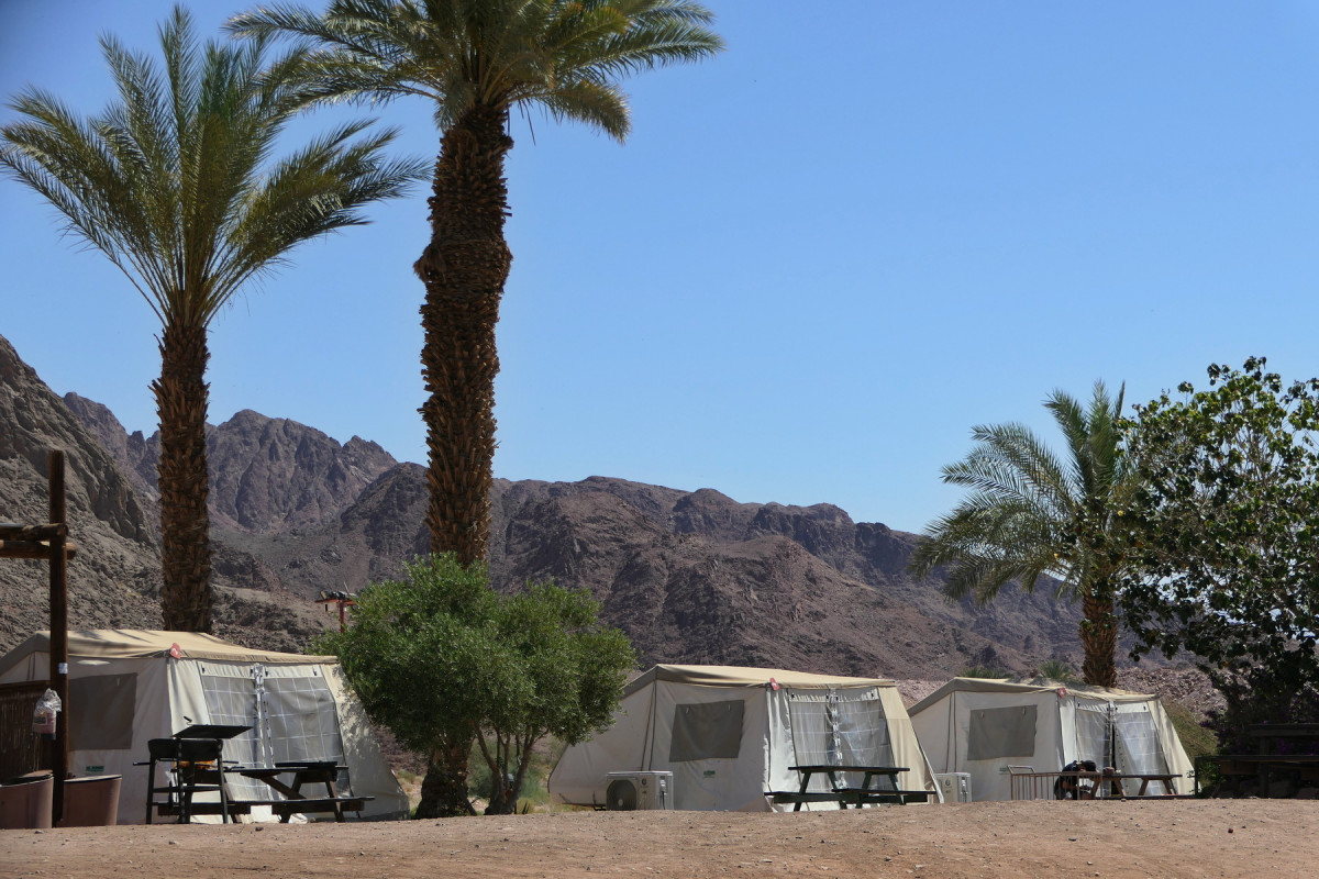 Erste Station unserer Reise war der Timna-Park am Rande der Arava-Wüste, nur 25 Kilometer nördlich von Eilat. Dieser Park erstreckt sich auf einer Fläche von 60 Quadratkilometern mit bizarren Felsformationen aus rotem Sandstein. Hier wurden zur Zeit der Ägypter Kupferminen betrieben.