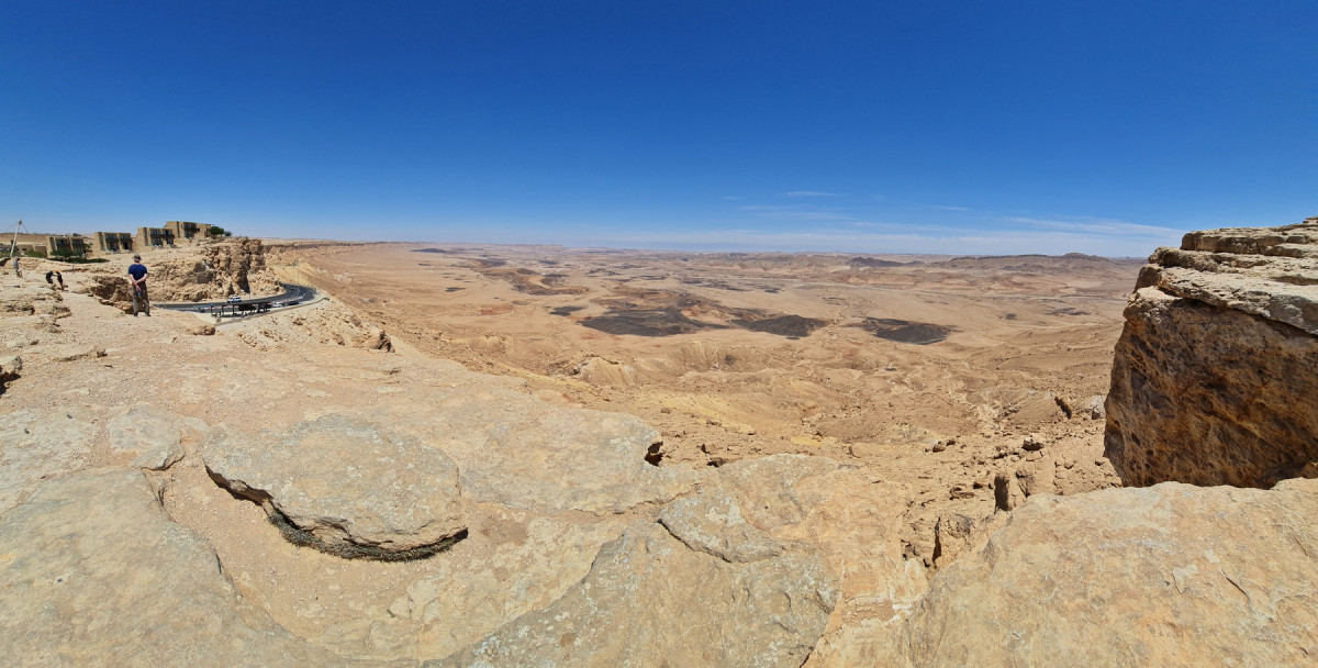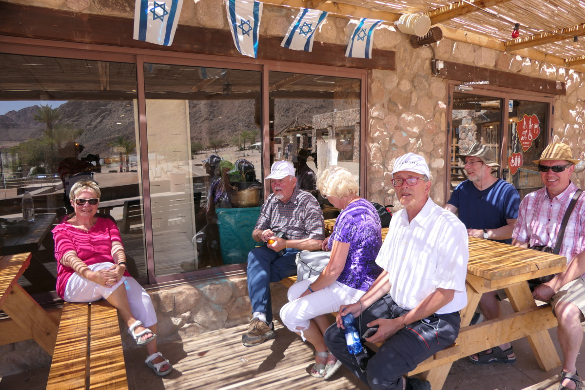 Wir setzten unsere Reise durch die Wüste Negev fort und legten eine Mittagspause am Informationszentrum des Ramon-Kraters ein. In der größten Ausdehnung misst der Krater fast 40 km. Wir konnten dort junge Leute beim Abseilen beobachten. Der Ramon Krater ist ein einzigartiger Lebensraum für rund 40 verschiedene Arten kleiner Wüstentiere wie nicht giftige Schlangen, Nagetiere, Stachelschweine, Eidechsen, Skorpione und auch Schildkröten.
