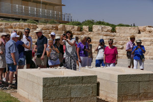 Während der Fahrt durch die Wüste Zin dachten wir an die Erfahrungen des Volkes Israels in dieser Gegend, als sie gegen Mose murrten und dieser den Felsen schlug, um ihnen Wasser zu verschaffen (4. Mose 20,1-13). Hier, in der Wüste Zin, ließen sich der israelische Staatsgründer und frühere Ministerpräsident David Ben Gurion und seine Frau Paula begraben. Wir besuchten ihre Gräber bei der Ben-Gurion-Akademie, die sich besonders mit der Frage nach der Nutzung und Entwicklung von Wüstengebieten befasst. Ben Gurion unterstützte den Traum, „Die Wüste zum Blühen“ zu bringen. In diesem Forschungszentrum geht es um Fragen wie: Wie lässt sich Sonnenlicht konzentrieren, um das Bedürfnis nach dem teuren Material zum Bau von Solarzellen zu reduzieren? Welche Bepflanzung ist nachhaltig geeignet, um die Bodenerosion durch Wind und Wasser aufzuhalten? Wie lässt sich das Problem der Ineffizienz beim Prozess der Wasserentsalzung lösen?