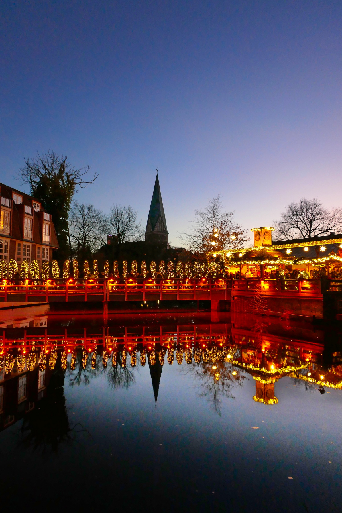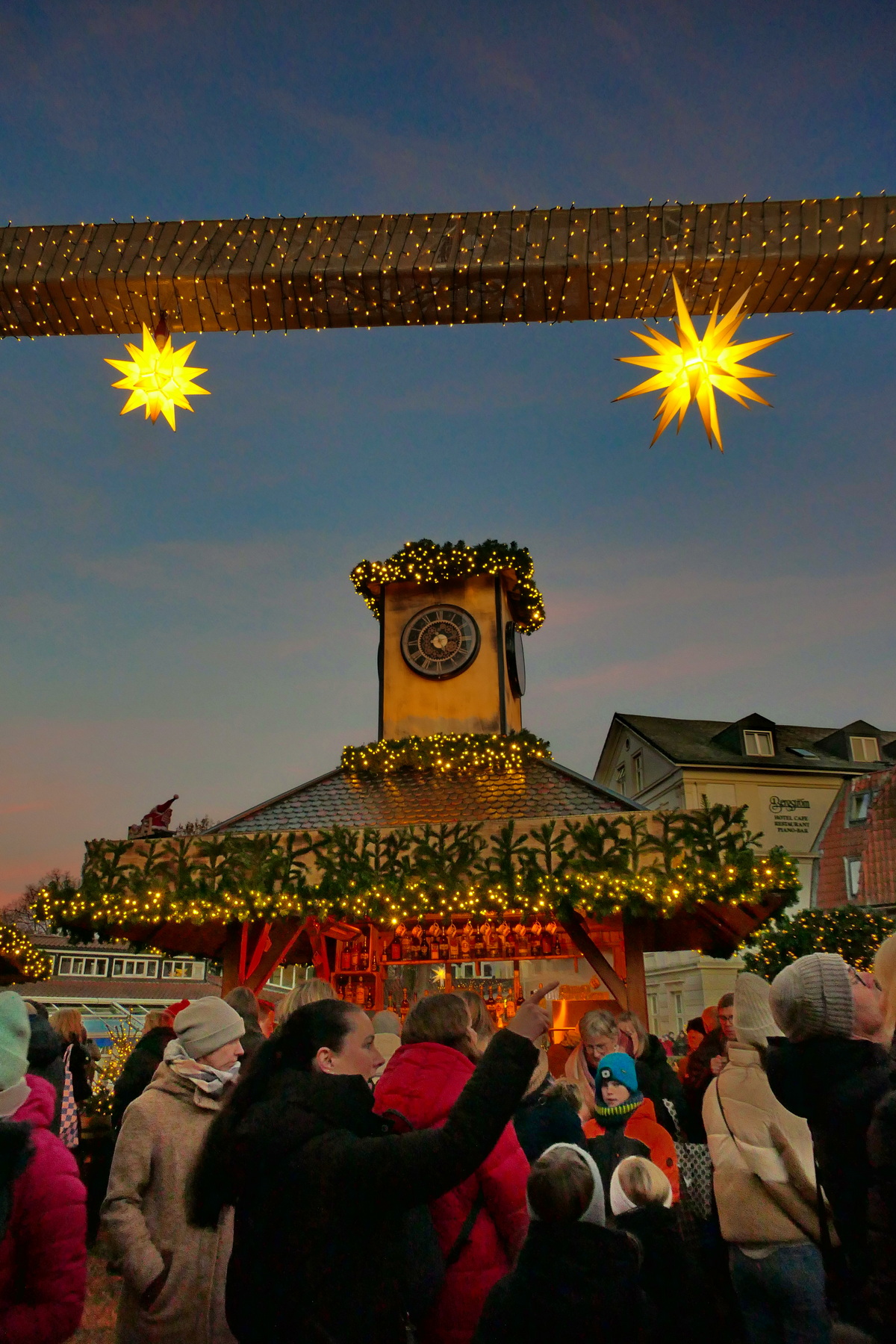 Tras los sombríos días de noviembre, el Adviento trae luz, ambiente y calidez a las ciudades y los hogares. Ayer, sábado por la tarde, dimos una vuelta por el mercado navideño de Luneburgo, que se extiende por varias plazas de la ciudad. Gracias a las luces de colores y a la «hora azul», pudimos hacernos unos recuerdos maravillosos. Sin embargo, estaba todo muy abarrotado, con montones de autobuses con turistas de todas partes que dificultaban el movimiento por los callejones y mercados. Y como siempre, las ofertas culinarias eran las más populares, como demuestran las colas de un metro frente a muchos puestos.